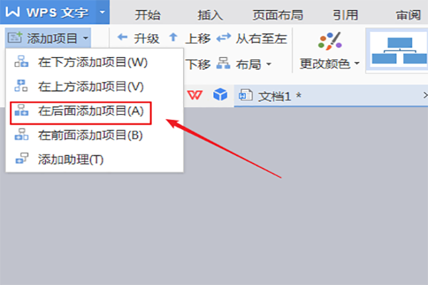 6、如果底下代表三个部门太少了,也可以在项目添加那里增加,方法一样,先点击最后一个,然后在添加项目里,选择在后面添加项目。