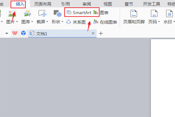 1、打开WPS进入,点击菜单栏上面的插入,再选择SmardArt。